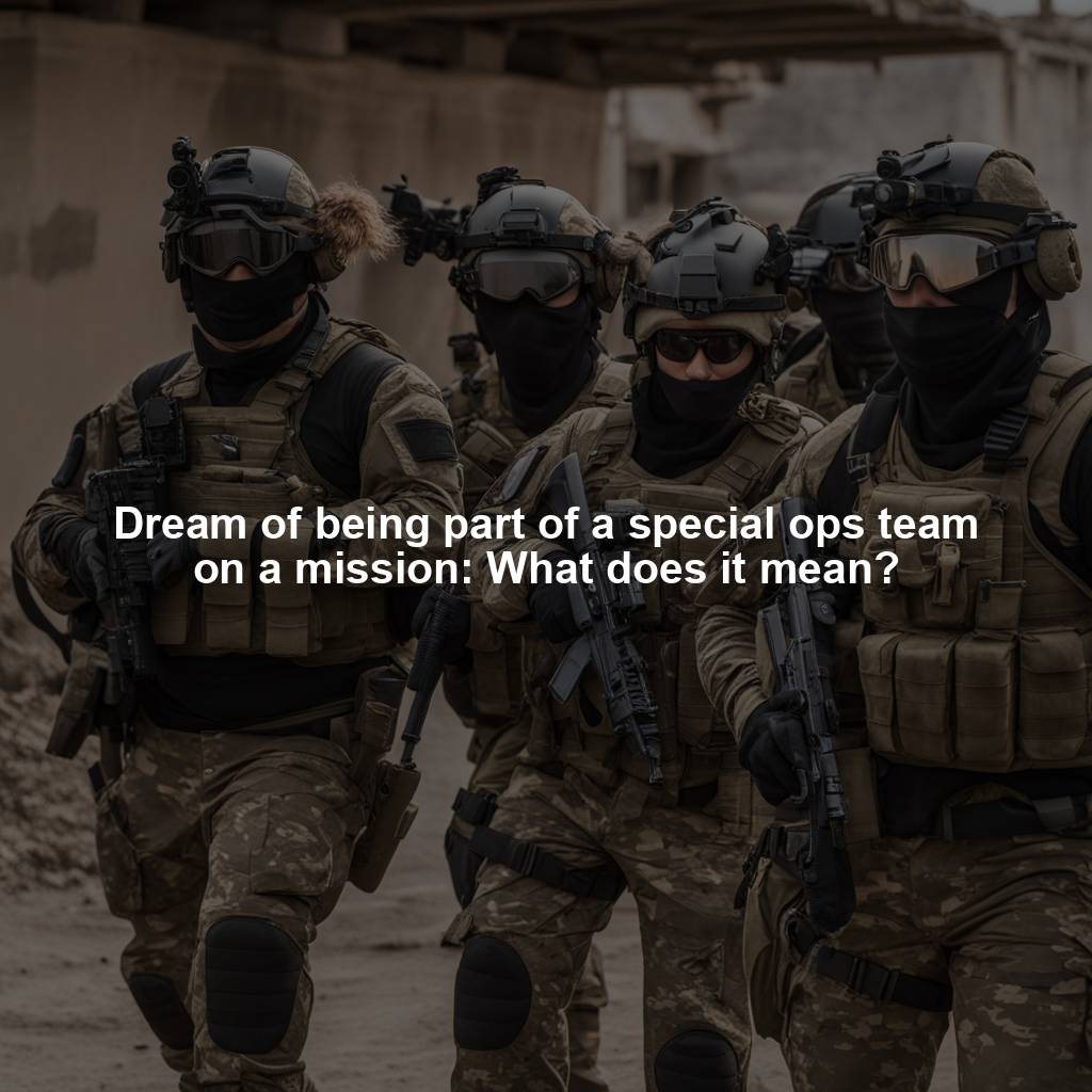 In conclusion, dreaming of being part of a special ops team on a mission is a powerful and symbolic dream that can have various interpretations. It may represent your sense of purpose, teamwork, strength, resilience, facing fears, or seeking adventure. Pay attention to the emotions and feelings you experienced during the dream to gain a deeper understanding of its meaning in your waking life.